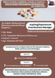 INCUMBENT MUST WORKING (WITHIN TOP 30 COUNTRIES OF INDIA) IN MALDA AND NORTH AND SOUTH DINAJPUR.