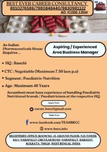 An Indian Pharmaceuticals House Requires ASPIRING / EXPERIENCED AREA BUSINESS MANAGER