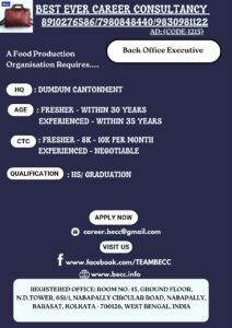 A Food Production Organisation Requires BACK OFFICE EXECUTIVE