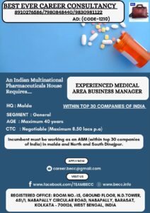 An Indian Pharmaceuticals House Requires EXPERIENCED AREA BUSINESS MANAGER (WITHIN TOP 30 COMPANIES OF INDIA)