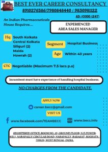 An Indian Pharmaceuticals House requires EXPERIENCED AREA SALES MANAGER