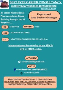 An Indian Pharmaceuticals House Ranking Amongst top 10 requires EXPERIENCED AREA BUSINESS MANAGER