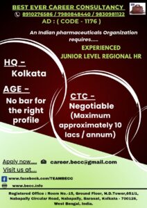 An Indian Pharmaceuticals House requires EXPERIENCED JUNIOR LEVEL REGIONAL HR