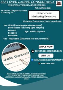 An Indian Diagnostic chain is looking for EXPERIENCED MARKETING EXECUTIVE