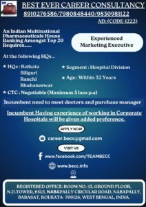An Indian Multinational Pharmaceuticals House Ranking Amongst top 20 Requires EXPERIENCED MARKETING EXECUTIVE