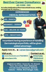 INCUMBENT HAVING EXPERIENCE OF HANDLING DERMATOLOGICAL PORTFOLIO, WILL BE GIVEN ADDED ADVANTAGE.