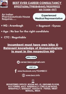 INCUMBENT MUST HAVE OWN BIKE & RELEVANT KNOWLEDGE OF GYNAECOLOGISTS IS MUST IN THE RESPECTIVE HQ.