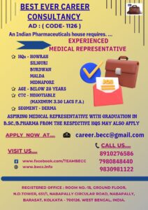 ASPIRING MEDICAL REPRESENTATIVE WITH GRADUATION IN B.SC./B.PHARMA FROM THE RESPECTIVE HQS MAY ALSO APPLY.