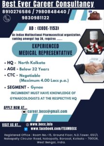 An Indian Multinational Pharmaceuticals Organization, ranking amongst top 20, requires EXPERIENCED MEDICAL REPRESENTATIVE