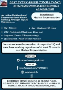 An Indian Multinational Pharmaceuticals House Ranking Amongst Top 20 Requires EXPERIENCED MEDICAL REPRESENTATIVE