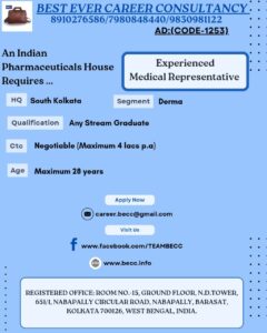 An Indian Pharmaceuticals House requires EXPERIENCED MEDICAL REPRESENTATIVE