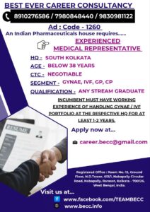An Indian Pharmaceuticals House requires EXPERIENCED MEDICAL REPRESENTATIVE
