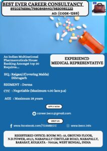 An Indian Pharmaceuticals House Ranking Amongst top 20 requires EXPERIENCED MEDICAL REPRESENTATIVE