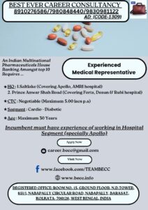 An Indian Multinational Pharmaceuticals House Ranking Amongst top 10 Requires EXPERIENCED MEDICAL REPRESENTATIVE