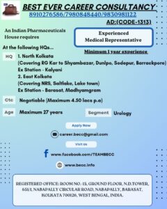 An Indian Pharmaceuticals house requires EXPERIENCED MEDICAL REPRESENTATIVE