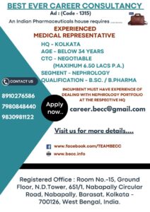 An Indian Pharmaceuticals house requires EXPERIENCED MEDICAL REPRESENTATIVE