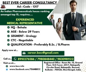 An Indian Pharmaceuticals house ranking amongst top 15, requires EXPERIENCED MEDICAL REPRESENTATIVE