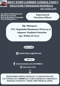 An Indian Multinational Pharmaceuticals House Ranking Amongst Top 20 Requires EXPERIENCED NUTRITION OFFICER