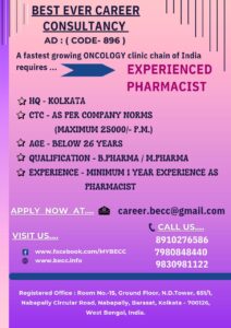 A fastest growing ONCOLOGY clinic chain of India requires EXPERIENCED PHARMACIST