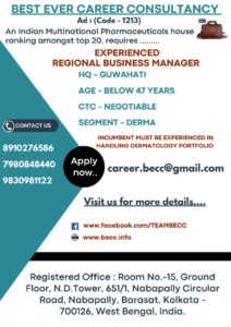 An Indian Multinational Pharmaceuticals house ranking amongst top 20, requires EXPERIENCED REGIONAL BUSINESS MANAGER