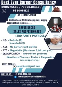 A Multinational Medical Equipment supply Organization requires EXPERIENCED SALES PROFESSIONALS (3RD PARTY PAYROLL)