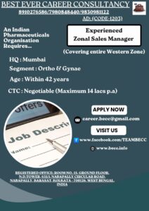 An Indian Pharmaceuticals Organization requires EXPERIENCED ZONAL SALES MANAGER