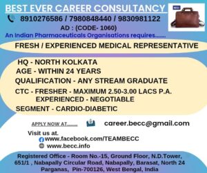 An Indian Pharmaceuticals house requires FRESH / EXPERIENCED MEDICAL REPRESENTATIVE