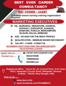 A kolkata based nursing training organisation requires MARKETING EXECUTIVES