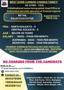 A Multinational house having global Head Office at Switzerland and India operation at Chennai requires RETAIL SALES EXECUTIVE